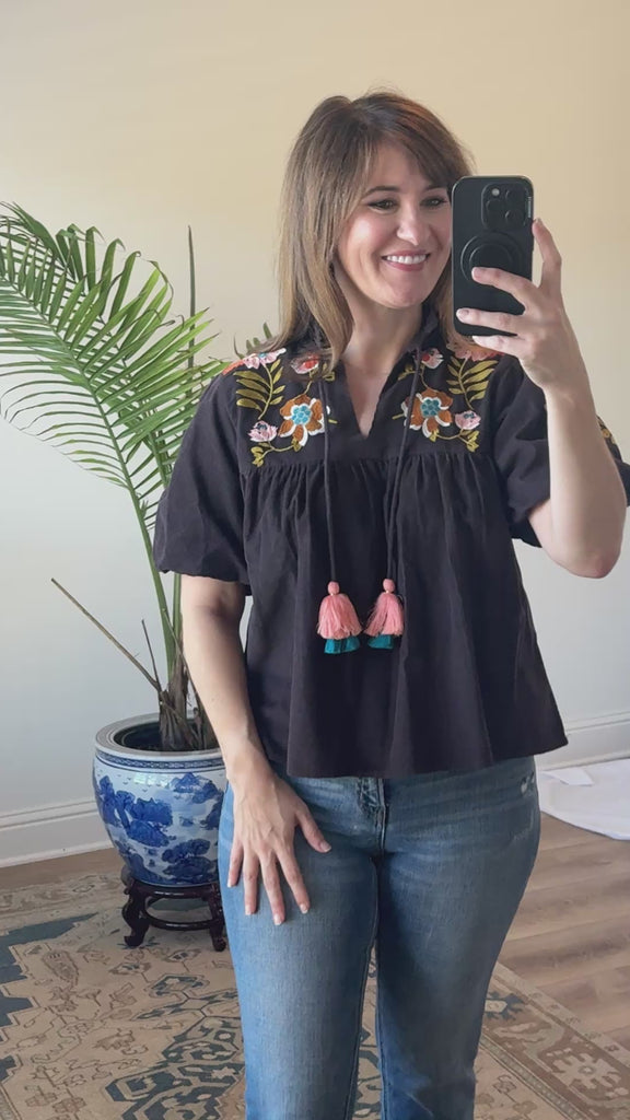 Chocolate Peasant EMB Blouse